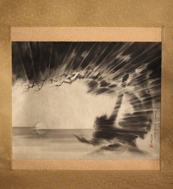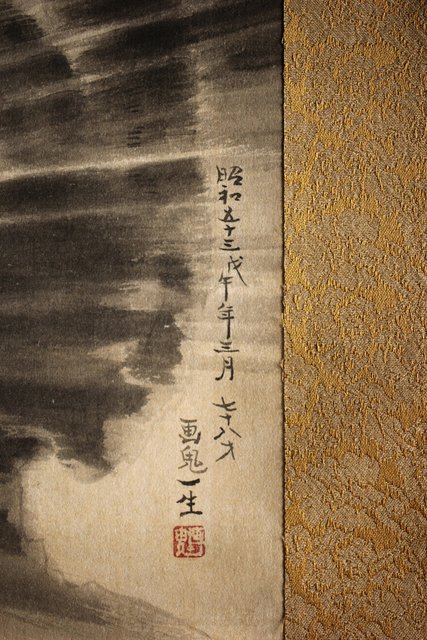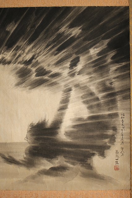 水墨 雷神図 画鬼一生 掛軸 Z227