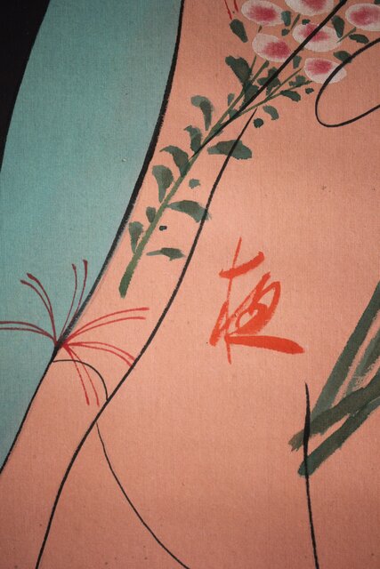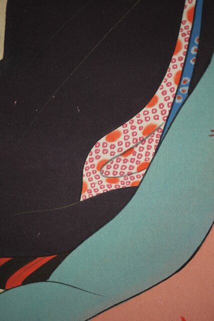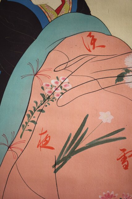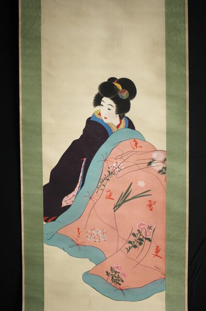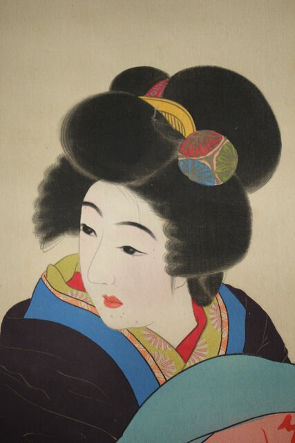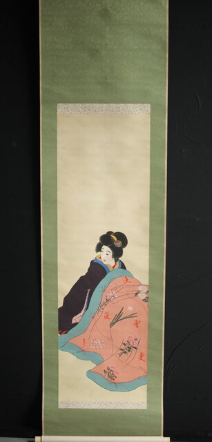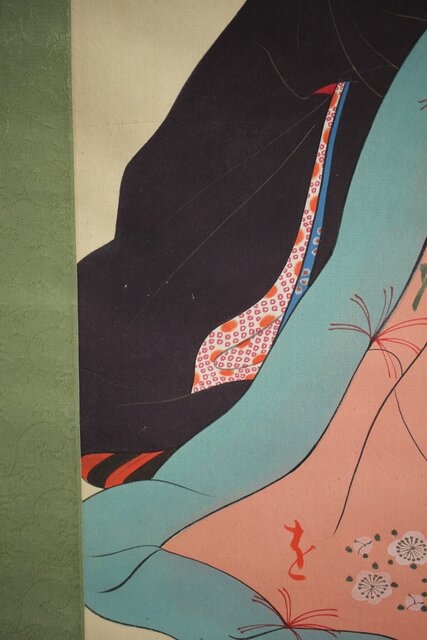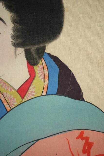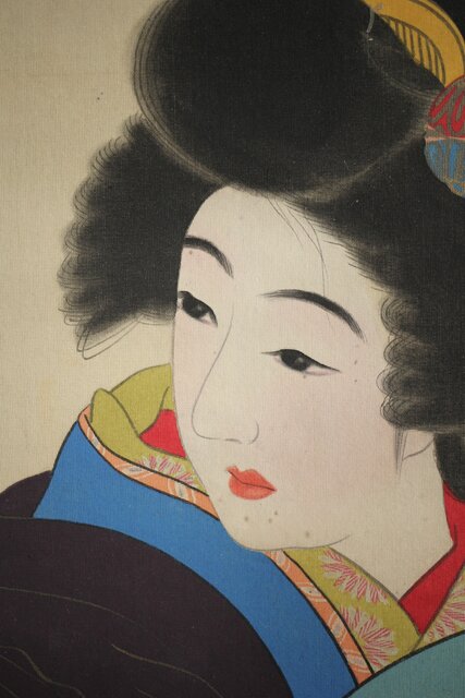 無銘 美人画 絹本彩色掛軸 Z231