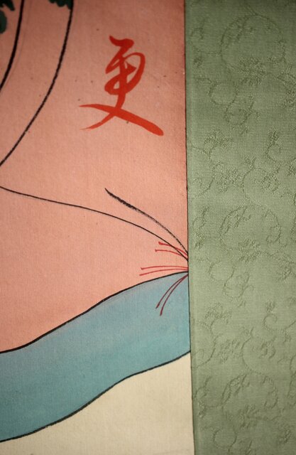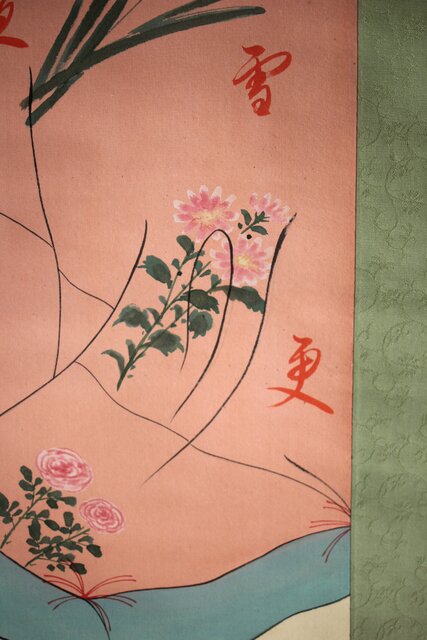 材質 絹本彩色掛軸 骨軸頭