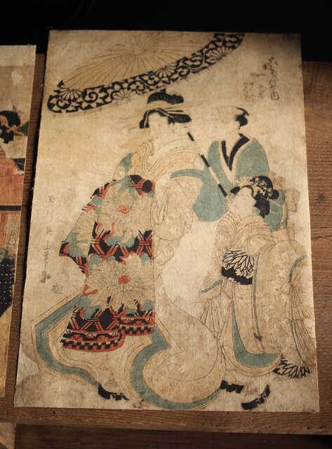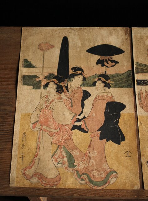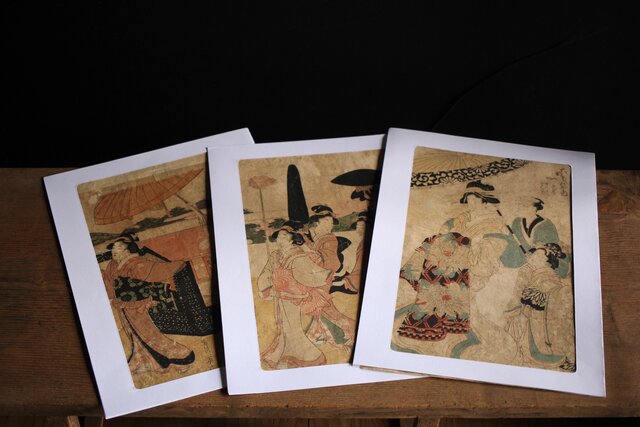 菊川英山 浮世絵木版画3枚 Z235