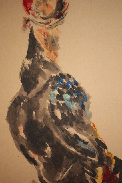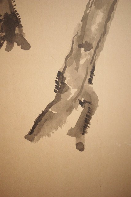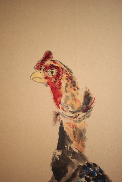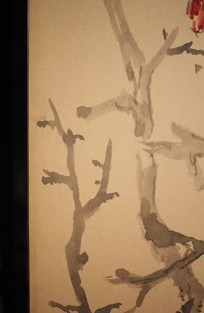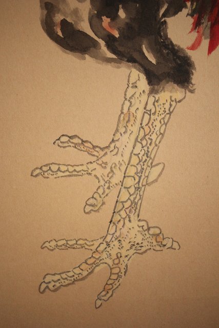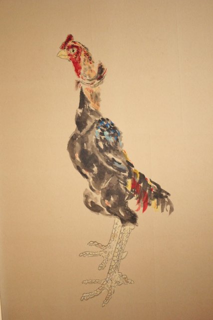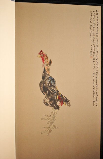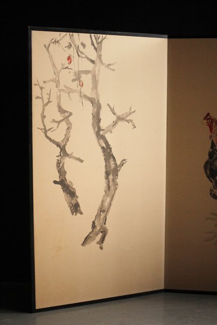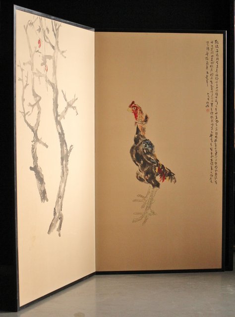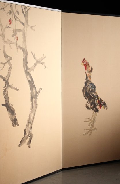 那須雅城 台湾博物館収蔵作家【軍鶏】紙本屏風 Z239