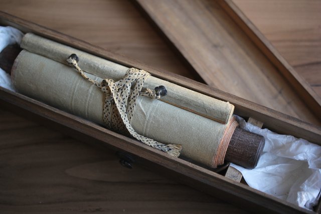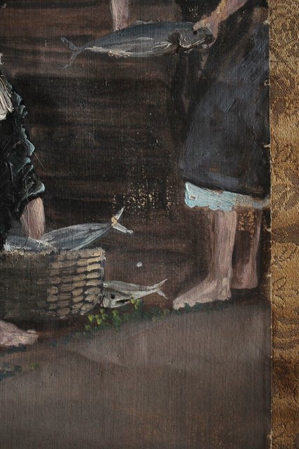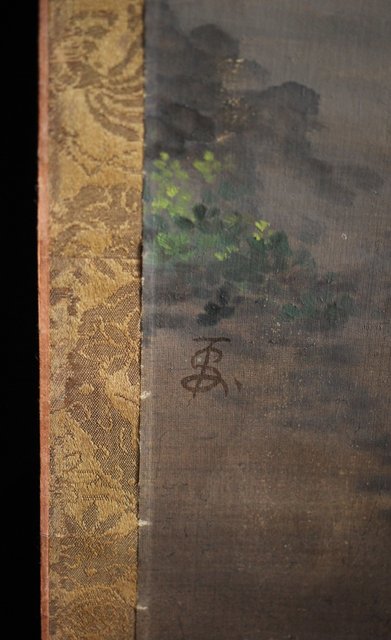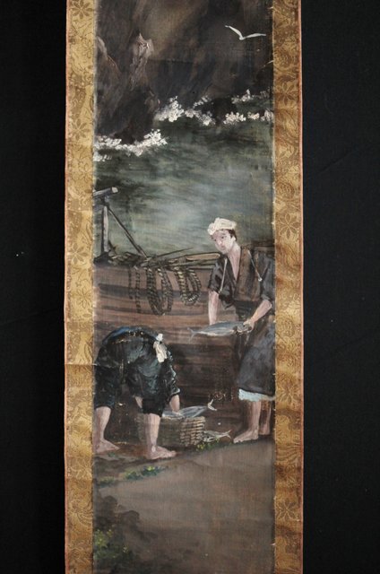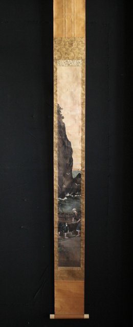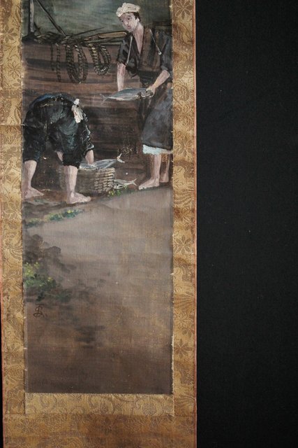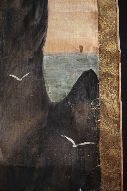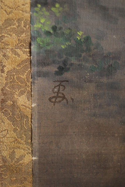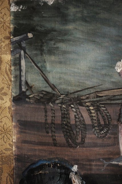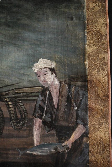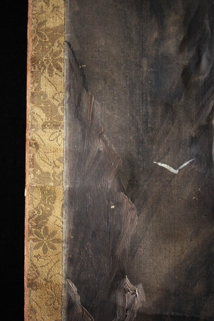 古い油絵を軸装仕立てにした非常に興味深い絵画