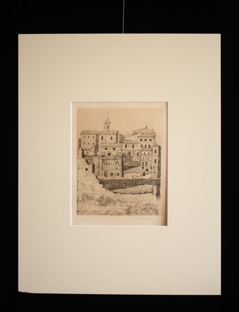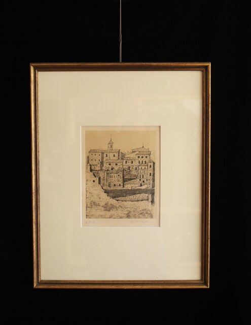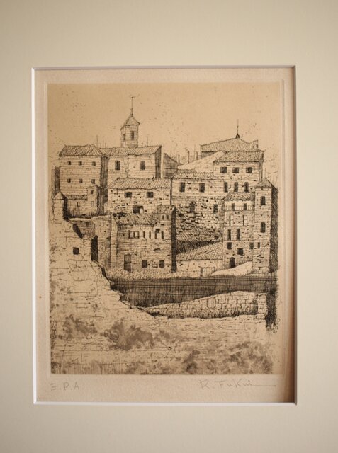 福井良之助 銅版画「窓」 鉛筆サイン 額装 Z252