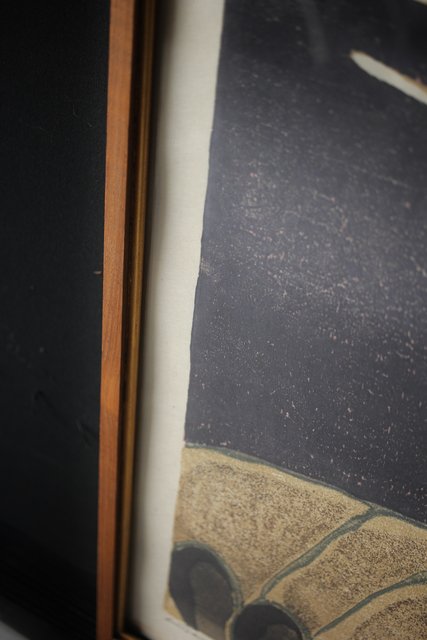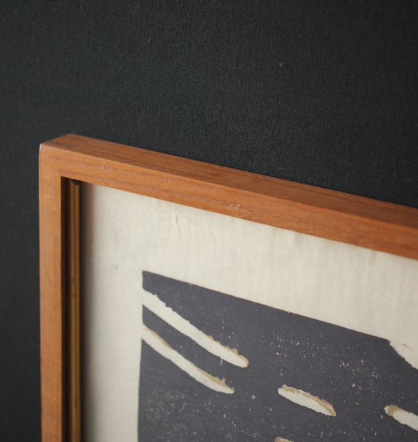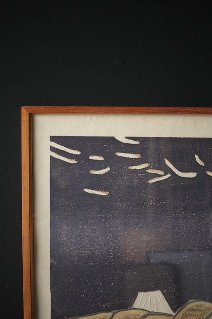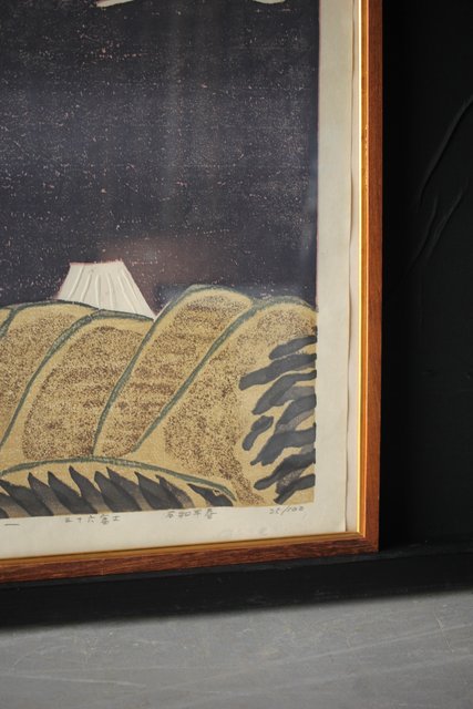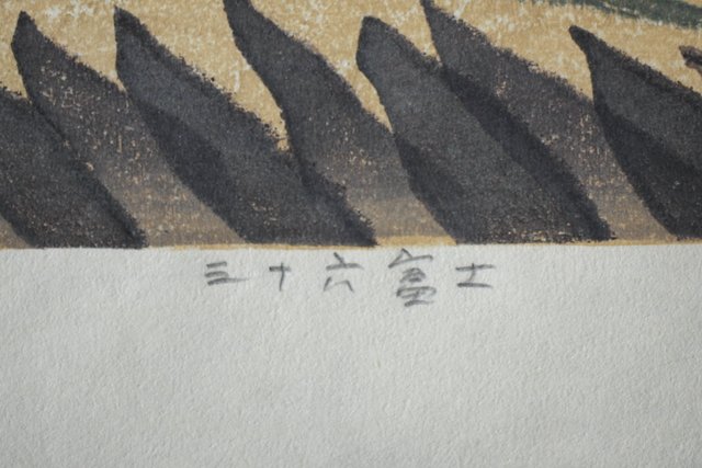 萩原英雄 三十六富士 石和早春 木版画 額装 Z255