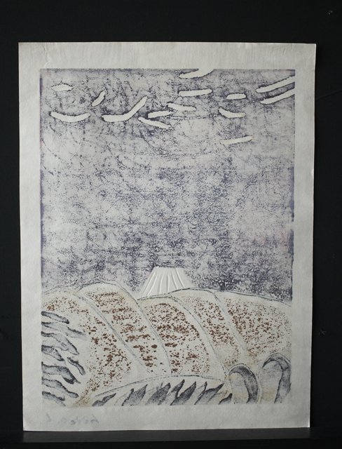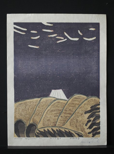 萩原英雄は油彩画家ですが晩年近くには富士山を題材とした連作木版画<三十六富士>の制作に取り組む