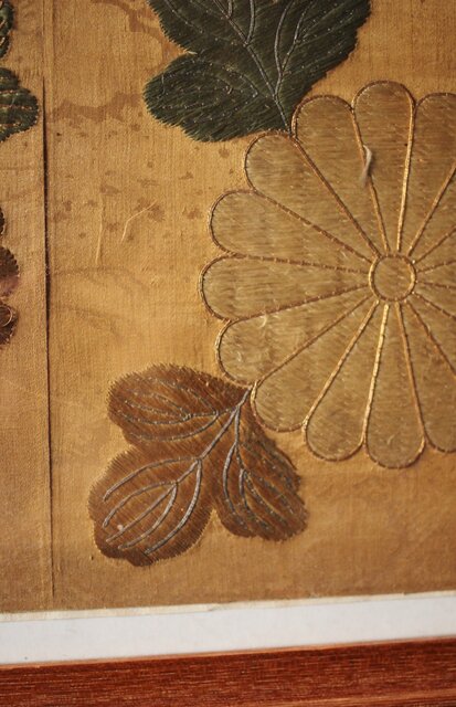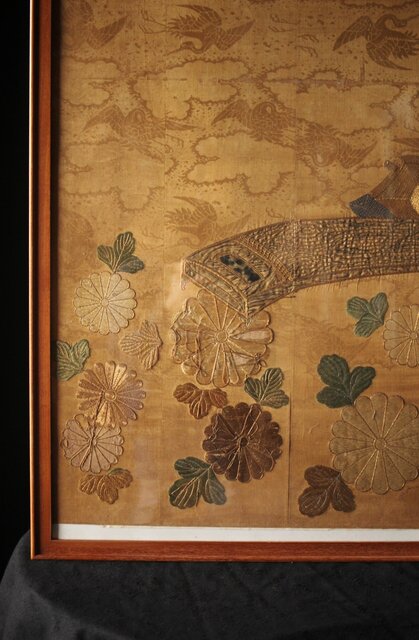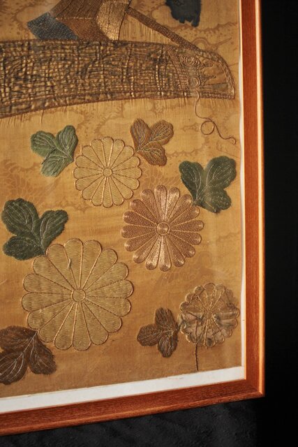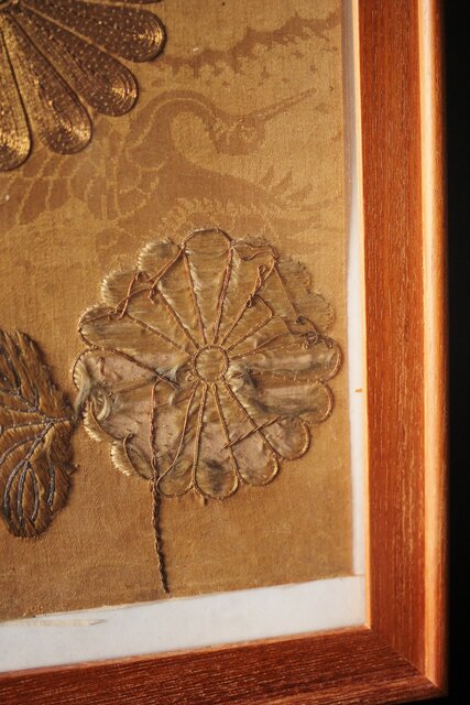 明治刺繍 織物 額装 Z265
