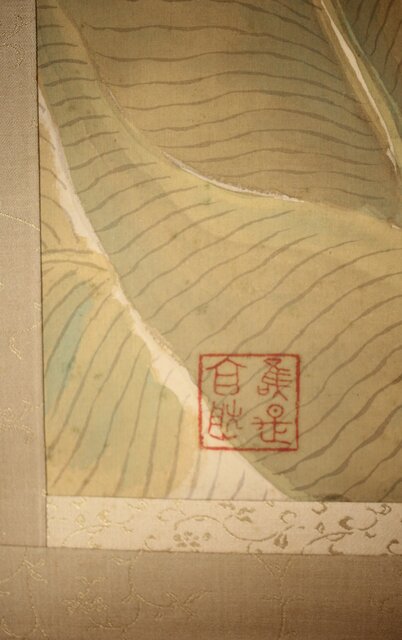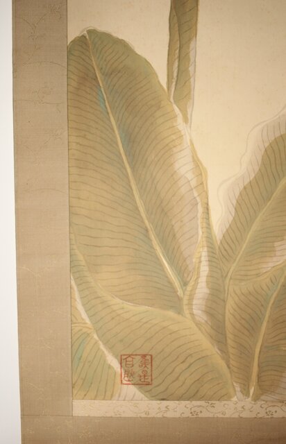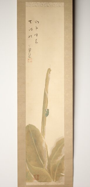倣 小川芋銭 [芭蕉蛙図] 紙本 掛軸 Z271