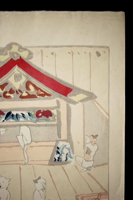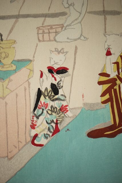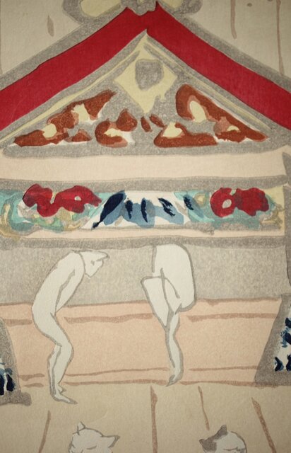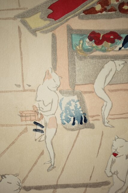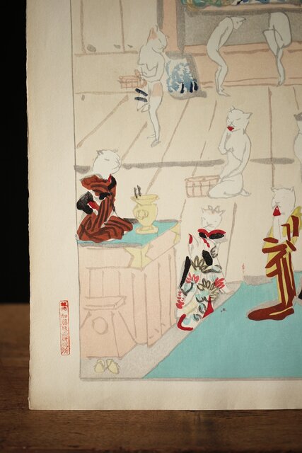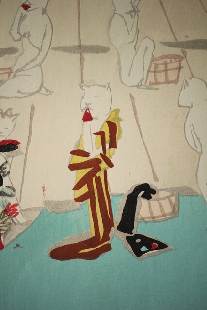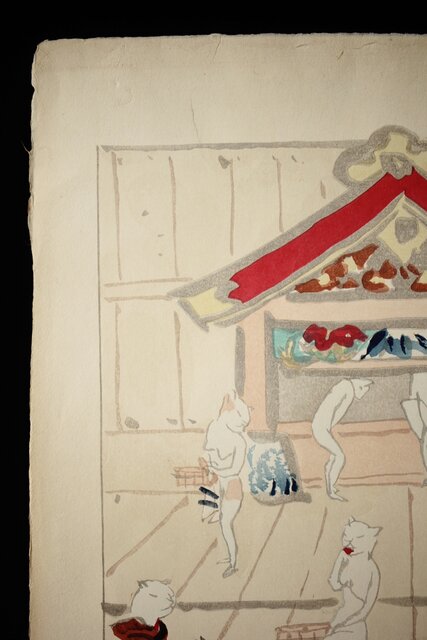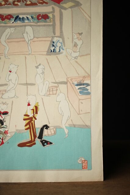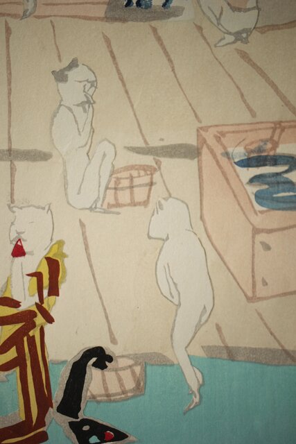 木村荘八《猫の銭湯 The public bath of a cat》木版画 Z282