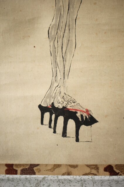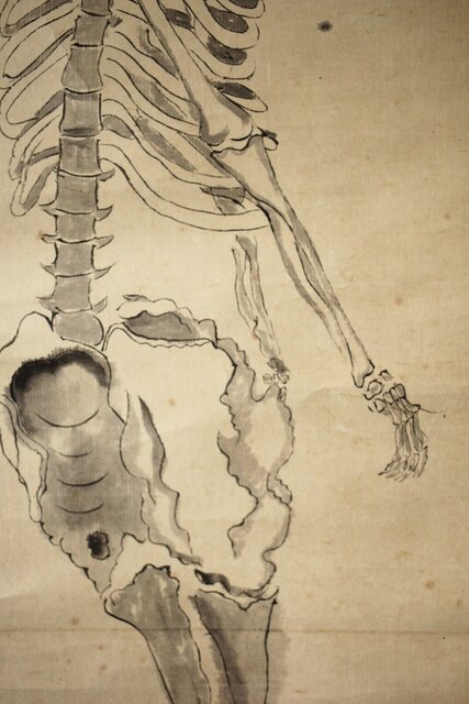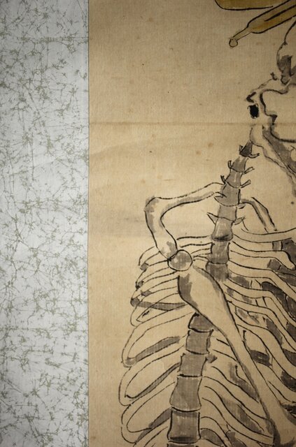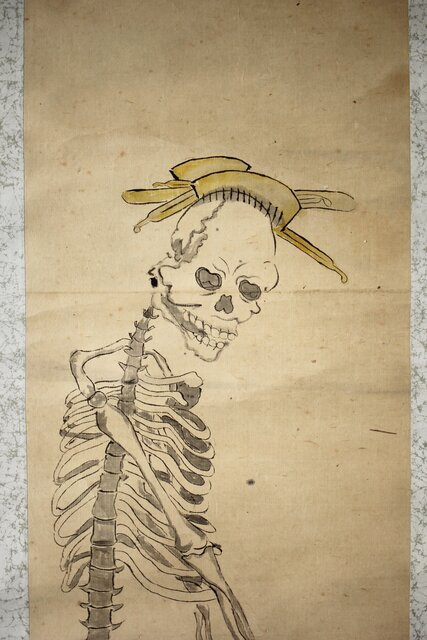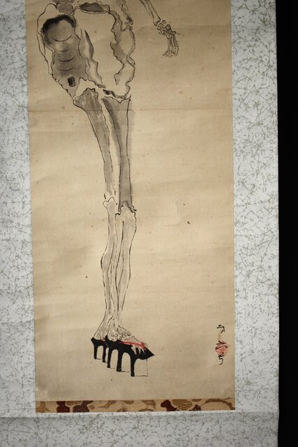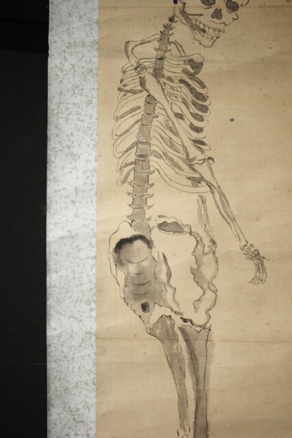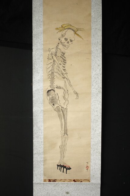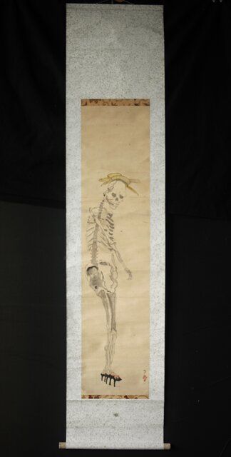 骸骨 しゃれこうべ 紙本軸装 掛軸 Z296