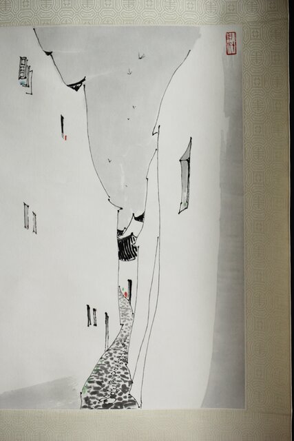 中国書画 呉冠中 栄宝斎工芸掛軸 Z303