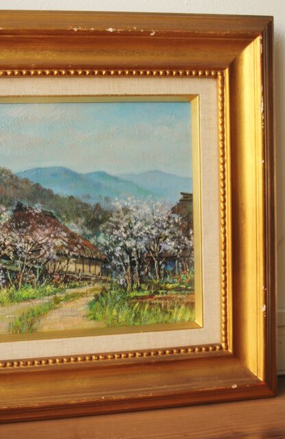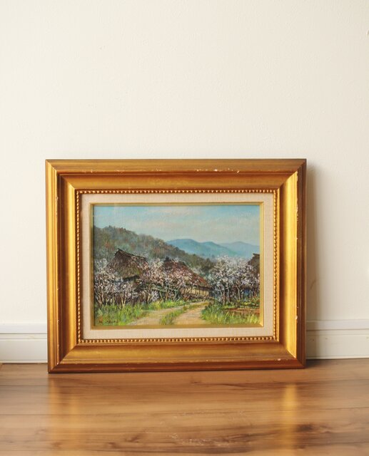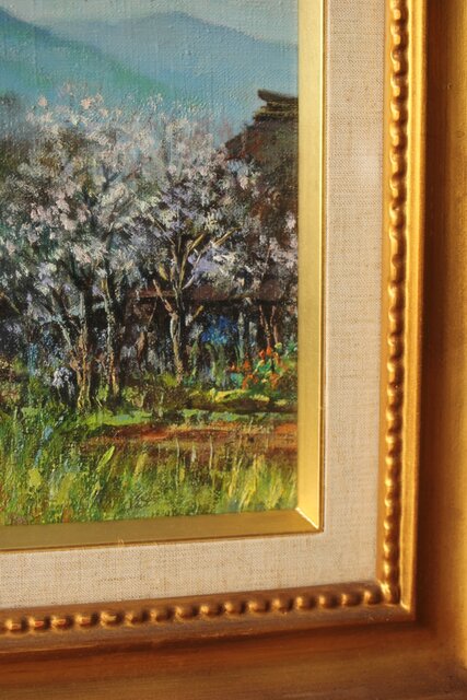 森誠 杏花の里 油彩4号 額装 Z310