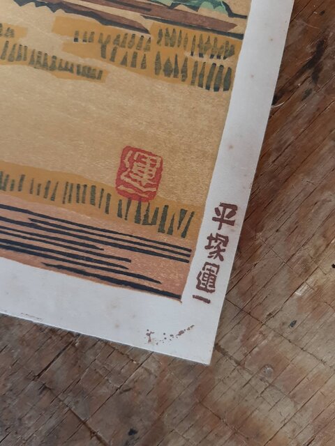 マージンに「平塚運一」印有 額装付き あたりアリ