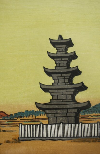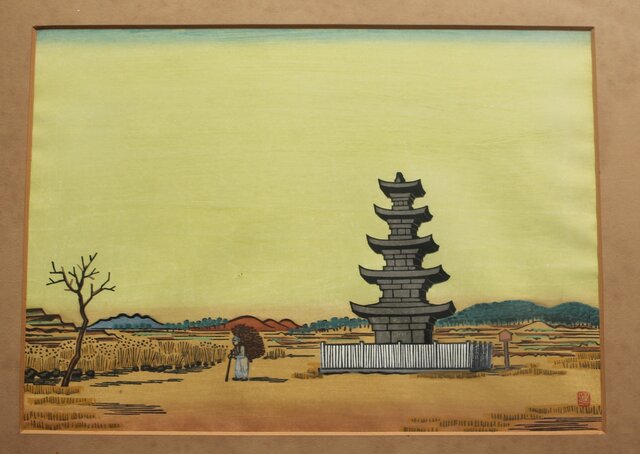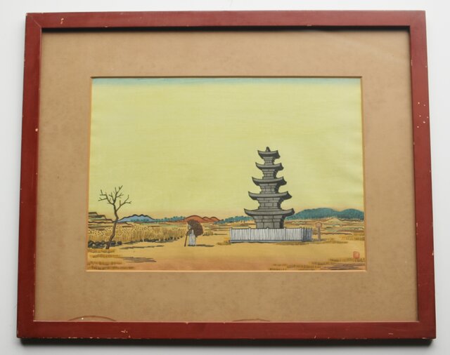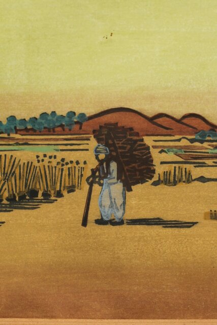 平塚運一 木版画 【百濟旧都】Z321