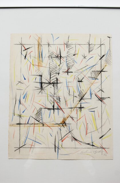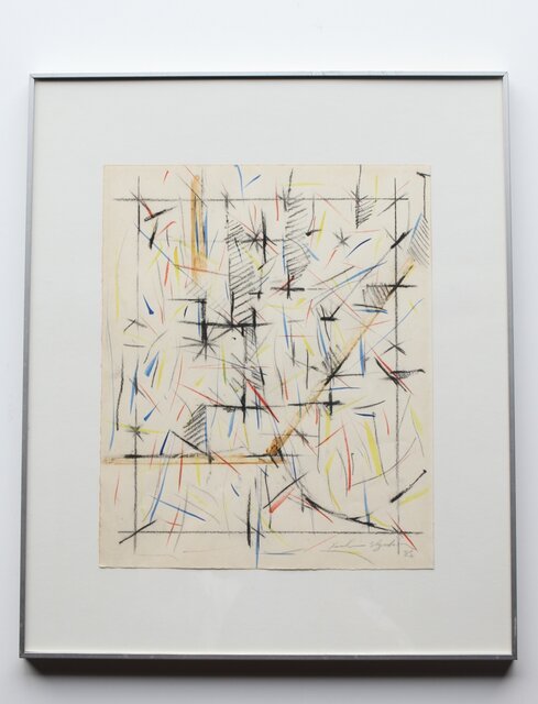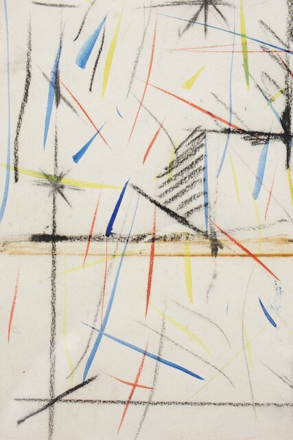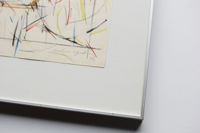 海老塚耕一 抽象画 アブストラクトA 額装 水彩 色鉛筆 A338