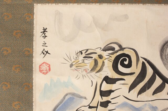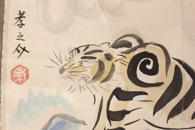田村孝之介【虎図】紙本掛軸 Z359
