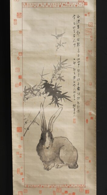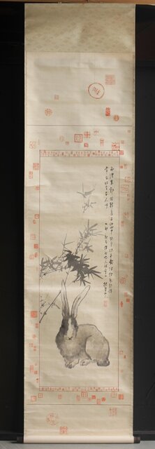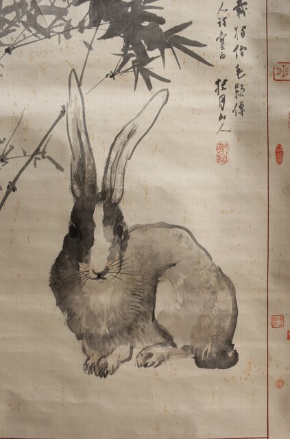 松林桂月 絖本描表装 兎と落款掛軸 篆刻家 中村蘭台印含 Z361 こちらの中央も初代中村蘭台「桂月」印 一致します