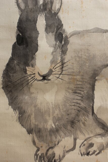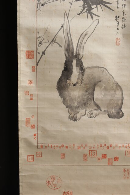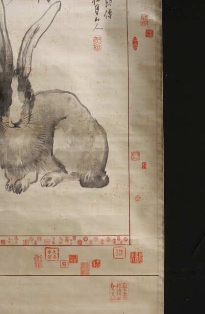 松林桂月 絖本描表装 兎と落款掛軸 篆刻家 中村蘭台印含 Z361 まだまだ細かく見れば 一致印は多そうです