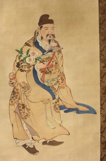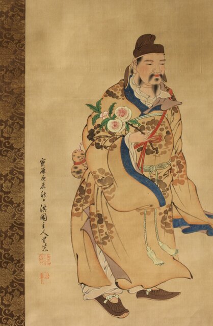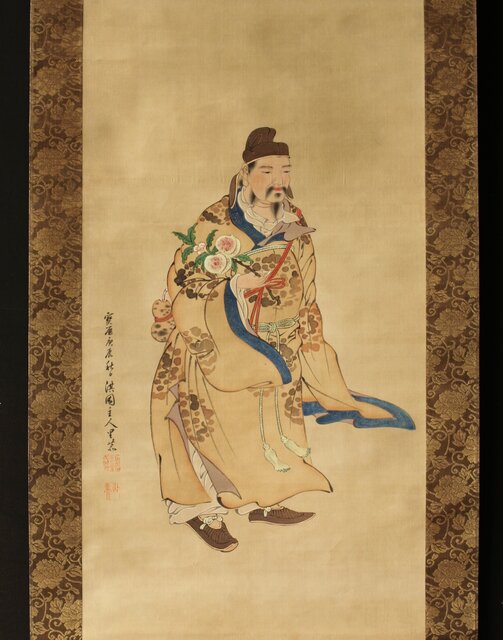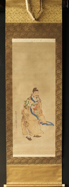 材質 絹本彩色 軸頭:木