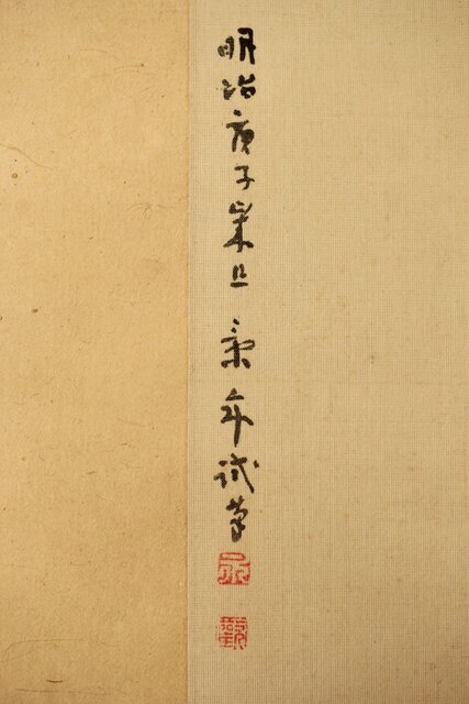 今尾景年の作品に 木島桜谷が識箱を付けています