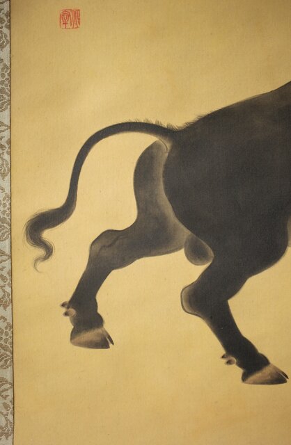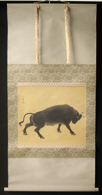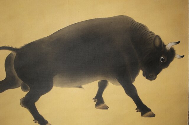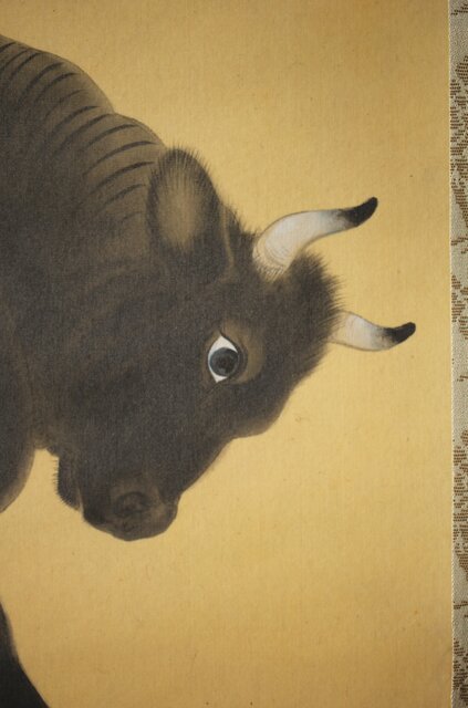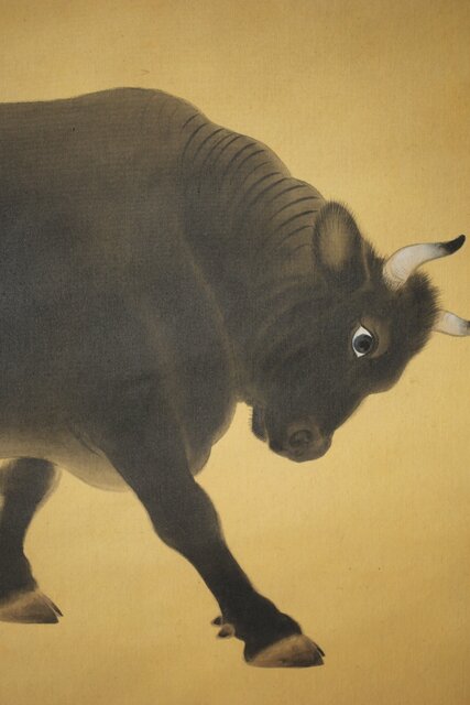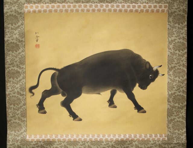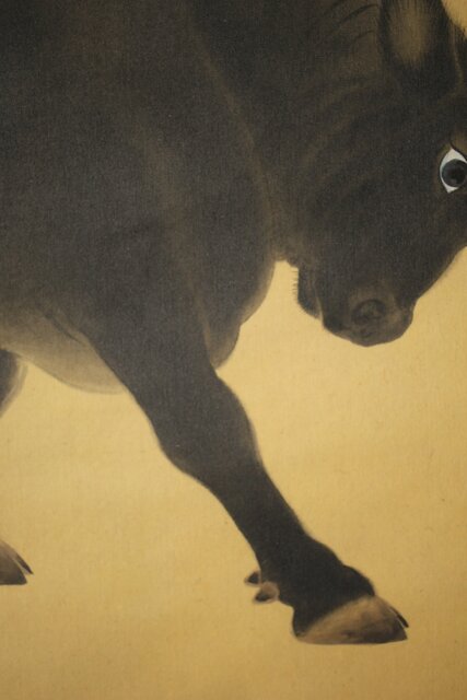 入江北宰【牡牛】絹本軸装 掛軸 Z432