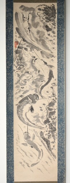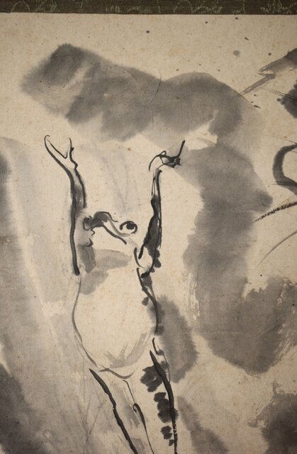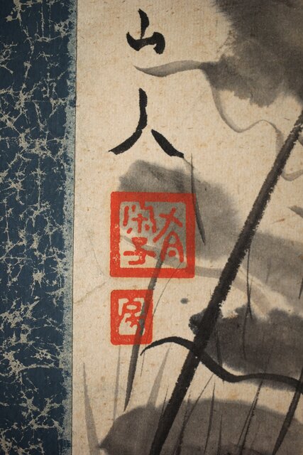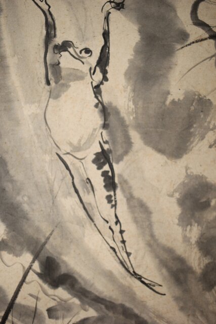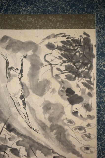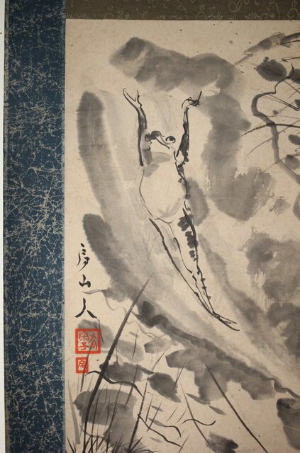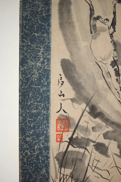 房山人 沼の舞 紙本水墨掛軸 Z453