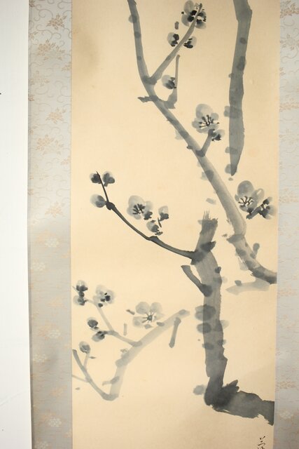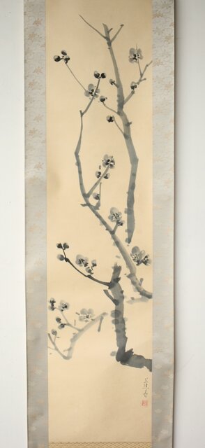 山口蓬春 梅図 紙本掛軸 Z458