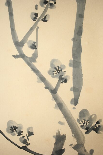 墨一色ですが どこか蓬春らしいモダニズムを感じる梅図