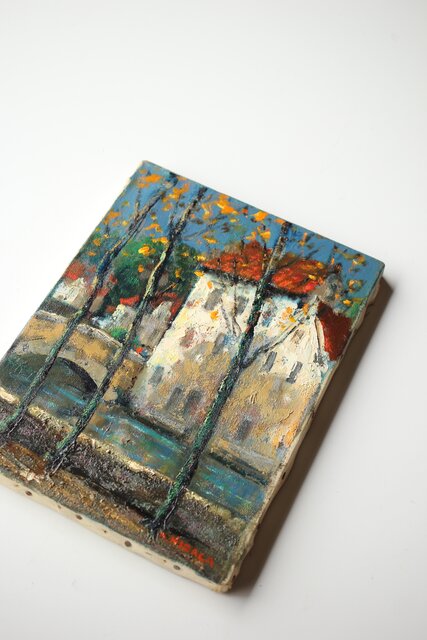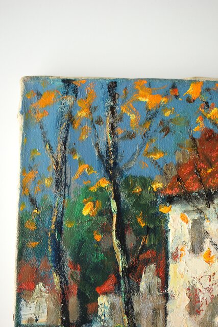 白色の家が映える 穏やかな風景画