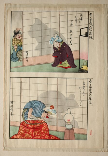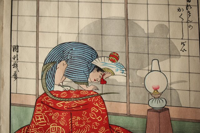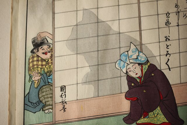 影絵は歌川広重や国芳のものが大変有名ですが 国利もオリジナルの影絵の表現をしていて