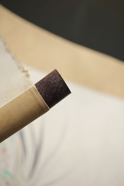 ※軸を巻く紐が欠損 全体的にしわが目立ちます