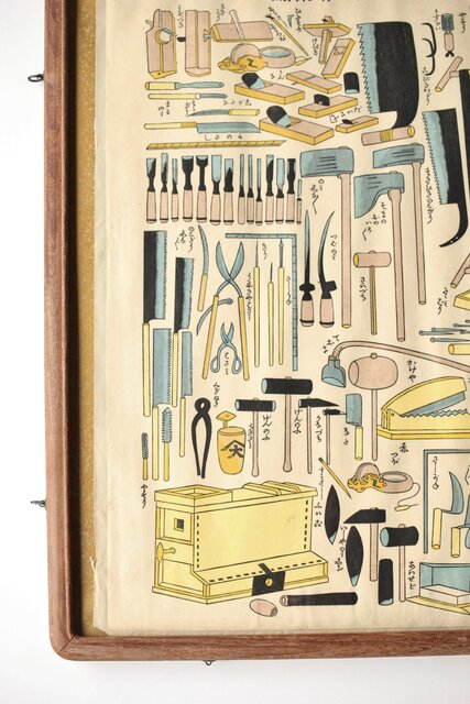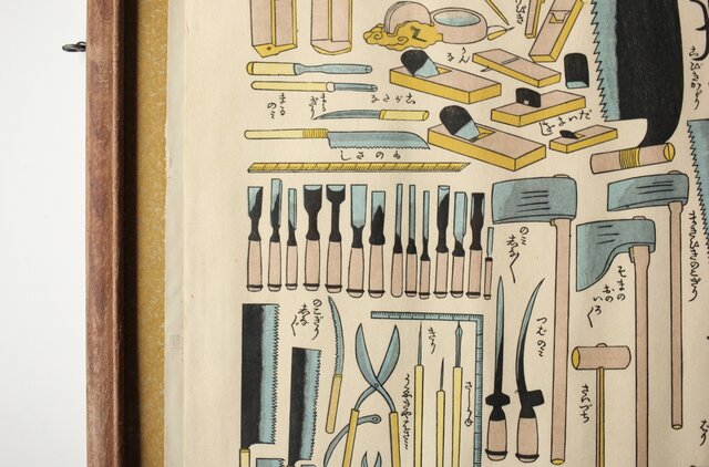 道具を主題とした なんともユーモラスな木版画