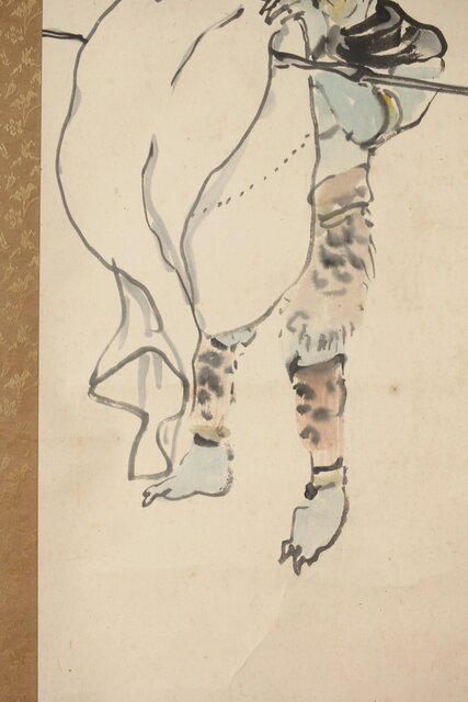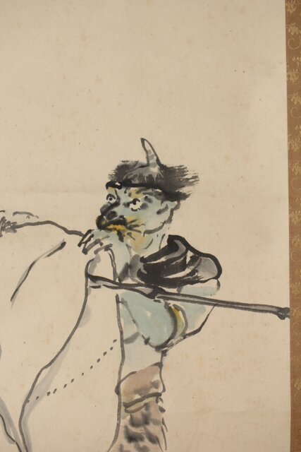 塩川文麟 四海太平図 風神雷神 紙本掛軸 対幅 Z545
