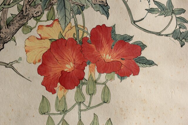 田世光 木版水印《凌霄花》栄宝斉出版 軸装 Z566