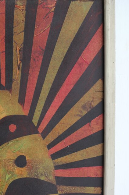 本作は所載 キャンバス地にミクストメディアのような多素材による作品とみられる