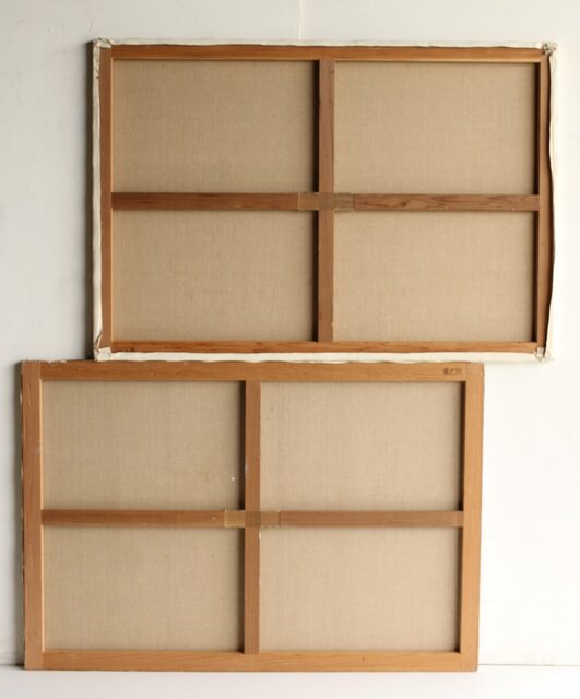 保存状態は良好 縦横誠一は不明ですがコントラストのある2枚の大きな作品で空間の飾り映えのある品