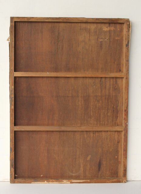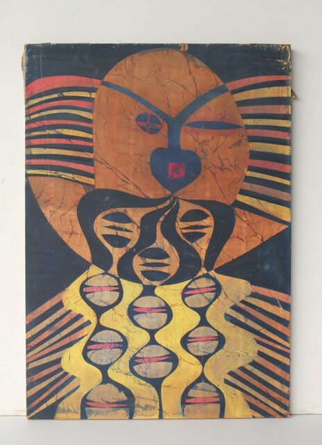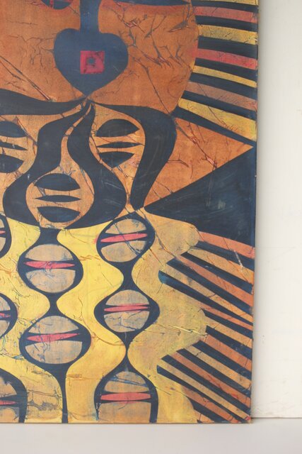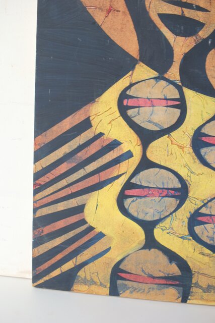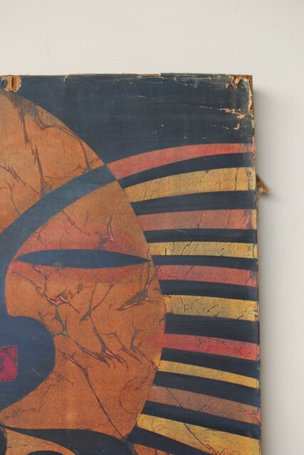 本作は所載 キャンバス地にミクストメディアのような多素材による作品とみられる