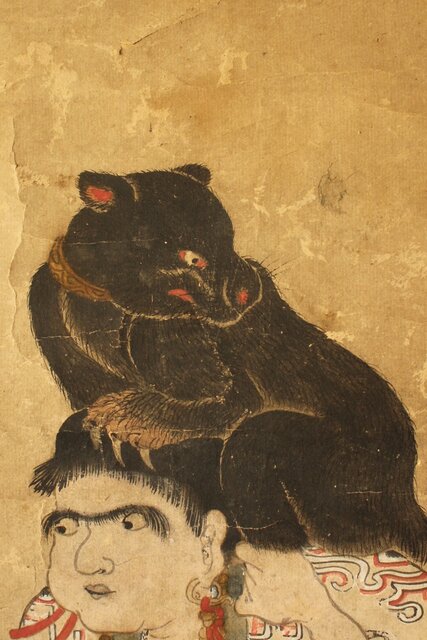 熊やアイヌ民族の意匠が描かれた珍しい構図です