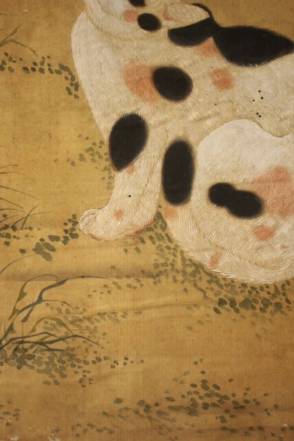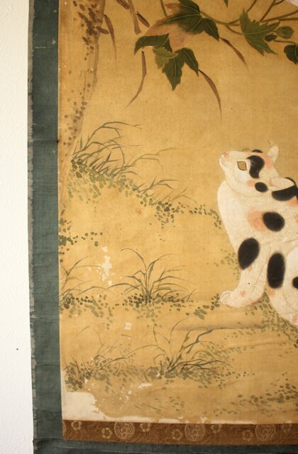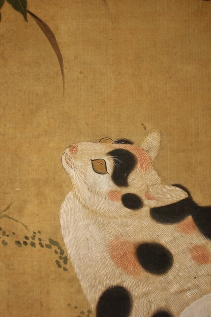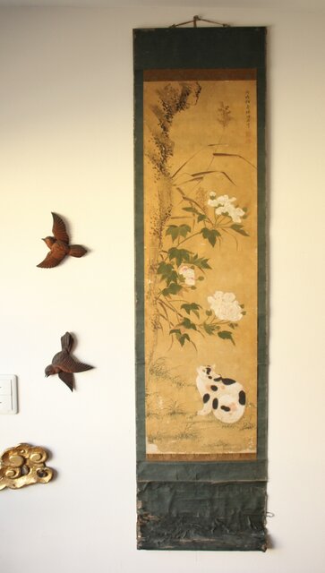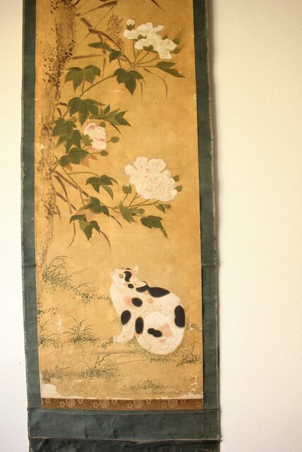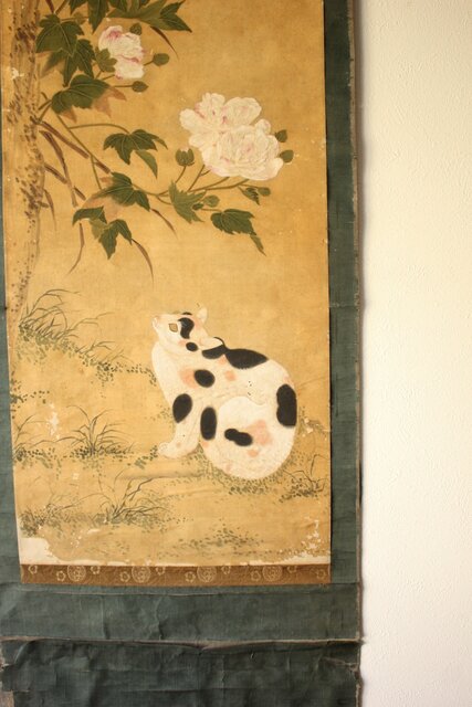 平時式 南蘋派か 猫と牡丹 絹本掛軸 Z657