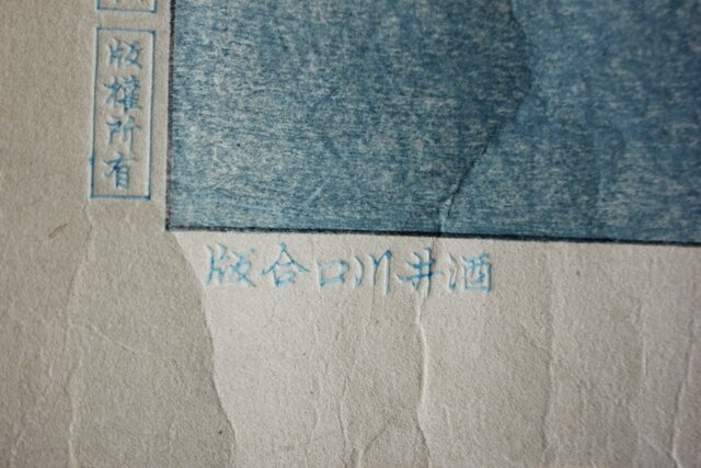 川瀬巴水の新版画「菖蒲」を酒井川口合版として出版し 輸出なども行ったとされる稀少な版元です