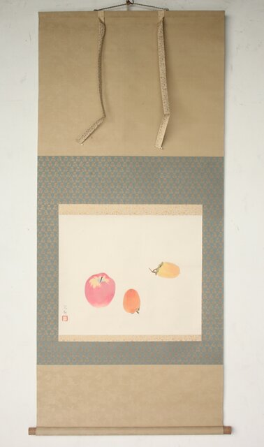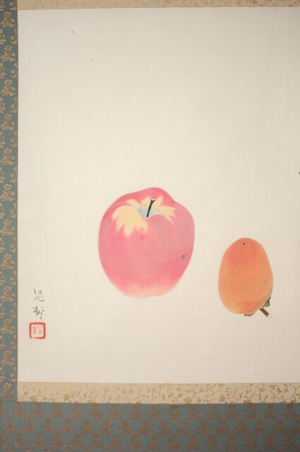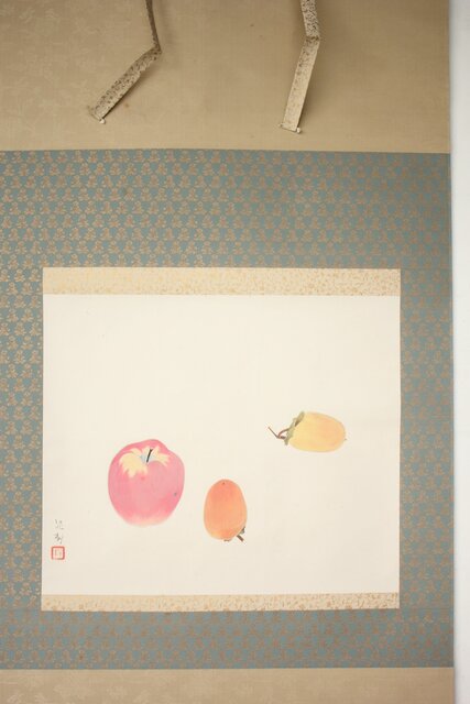 三輪晁勢 秋果図 紙本掛軸 共箱 Z747