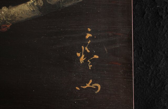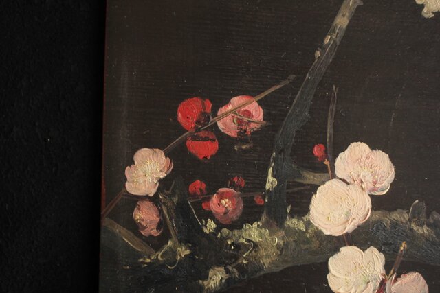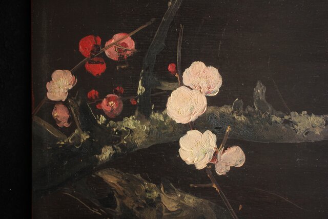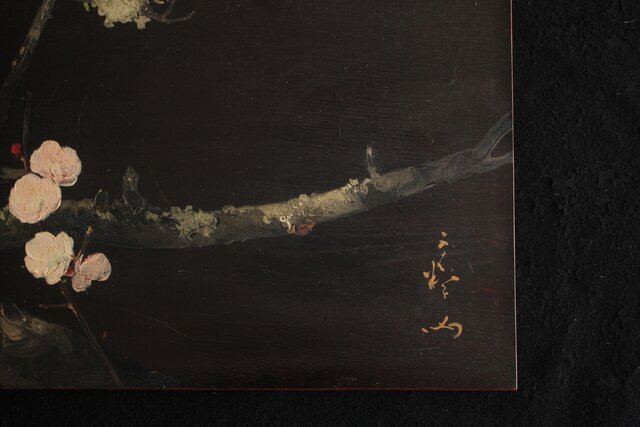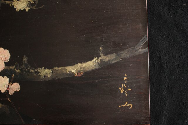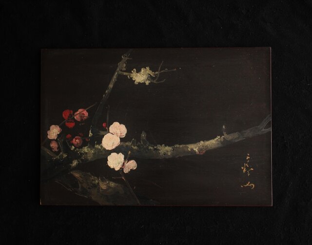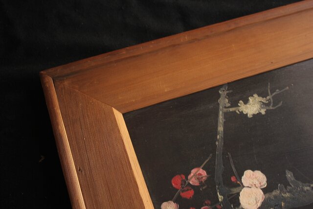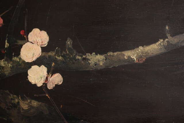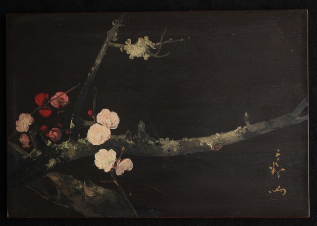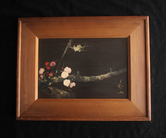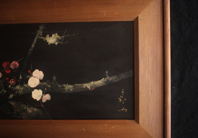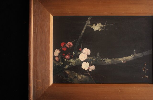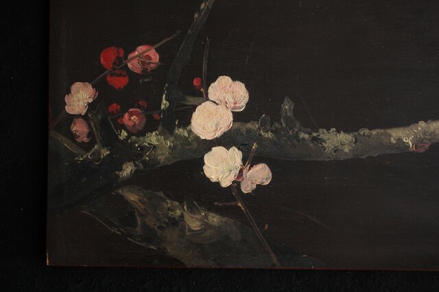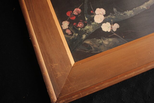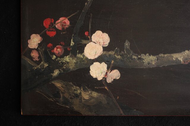川村清雄 紅白梅図 油彩 板絵 Z783