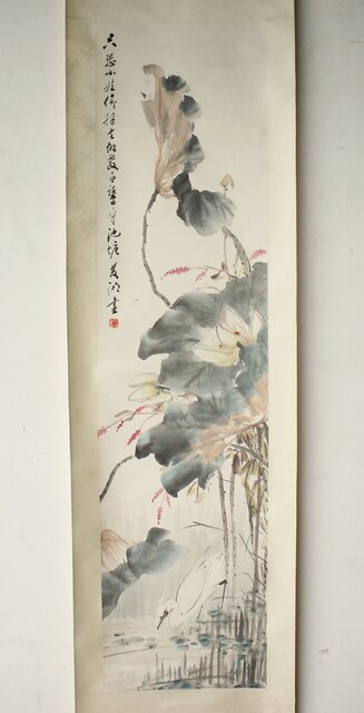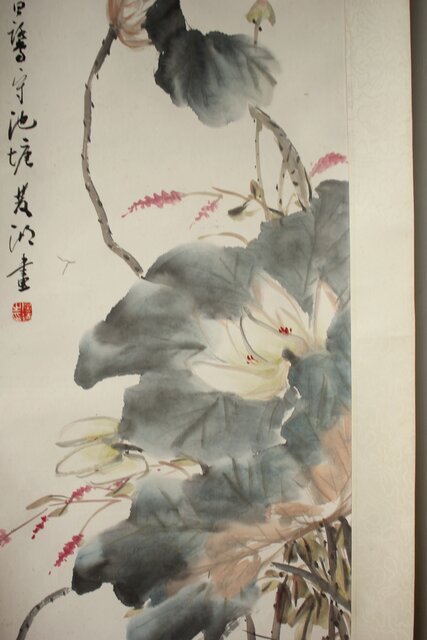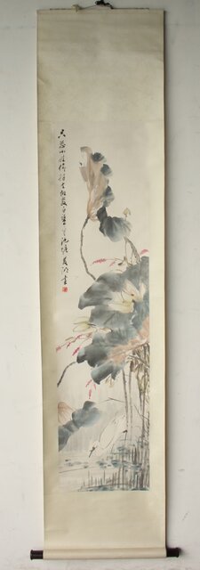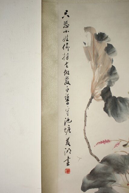 房少臣 蓮図 紙本掛軸  Z787