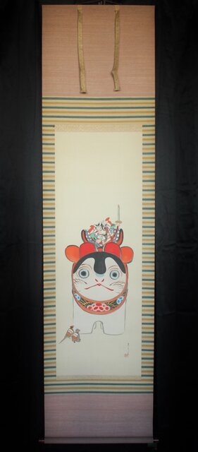 材質 絹本彩色 軸頭:木