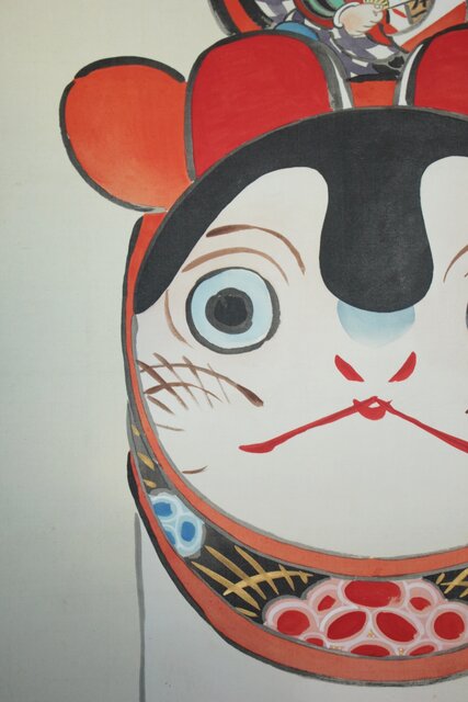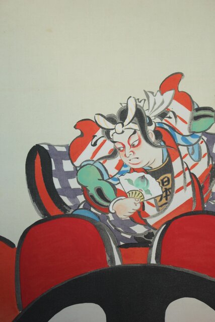 鳥居派宗家7代【4代 鳥居清忠】絹本着色軸装 日本一 桃太郎 浮世絵 Z809