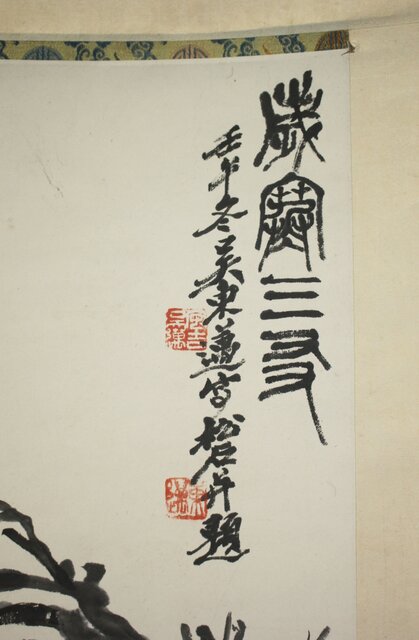 阮性山 墨松 呉昌碩三男 呉東邁 讃 掛軸 Z815