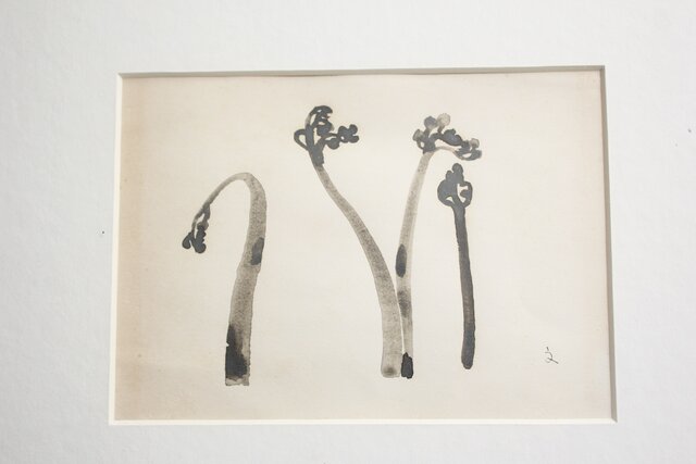 ぼんやりとシミが見られるのが残念だが 稀少な堀文子の墨絵です