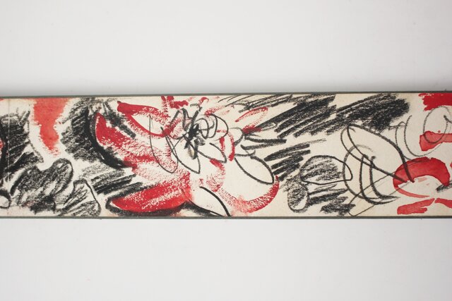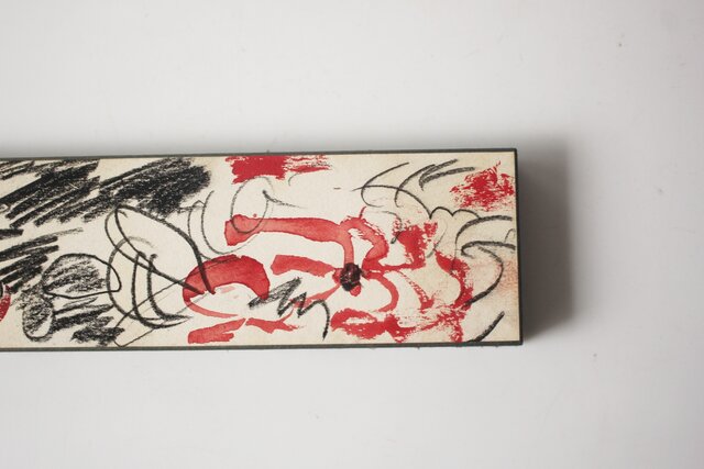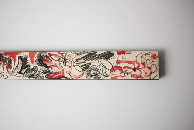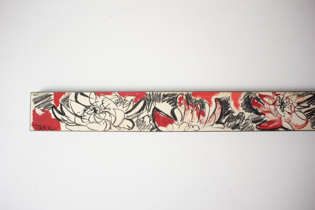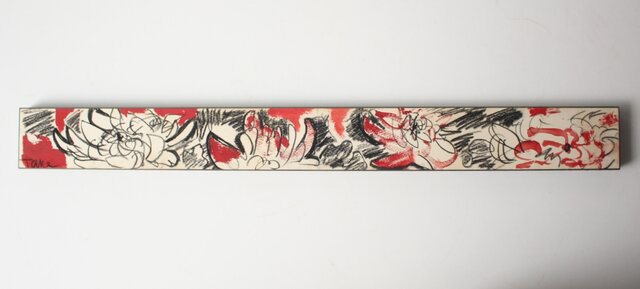 短冊よりも長い紙に 鉛筆と水彩で花を描いた作品
