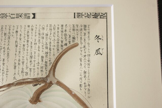 川岸富士男 木版画風の細密画 水彩 冬瓜 額装 ボタニカルアート Z977