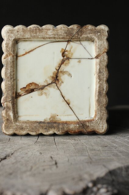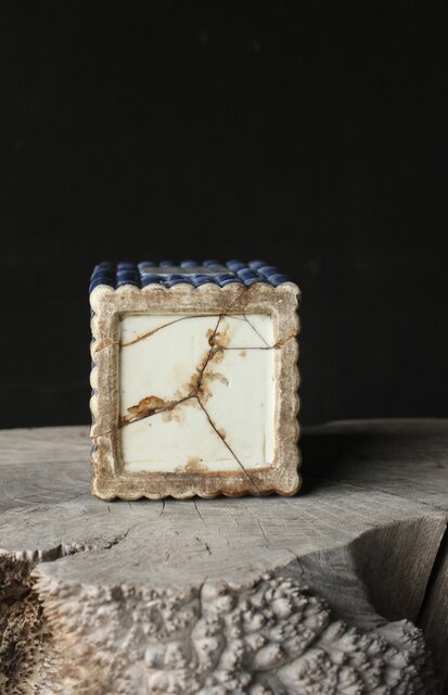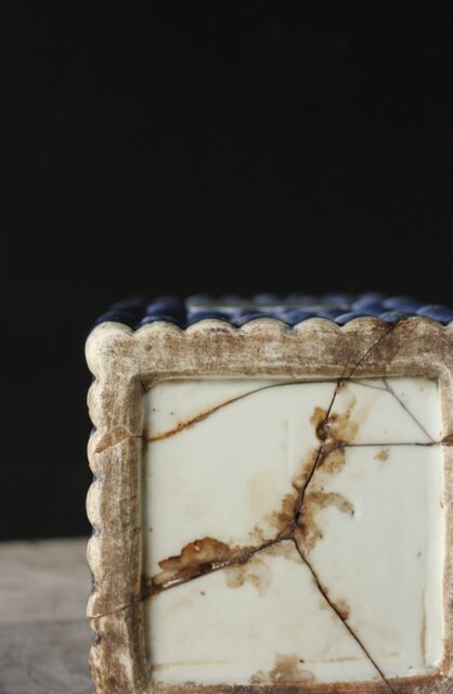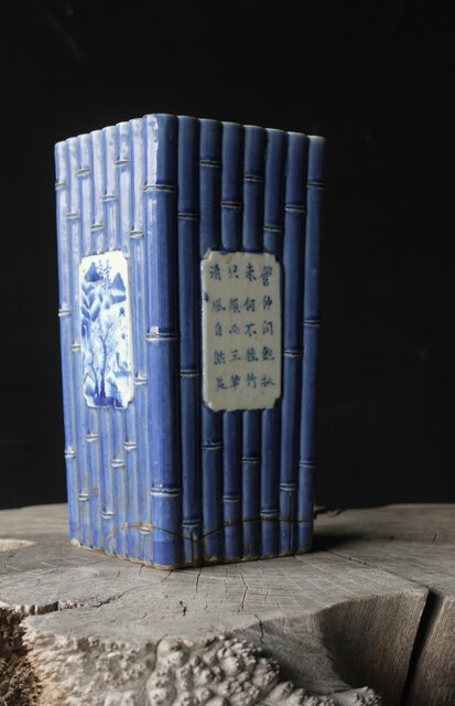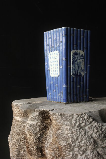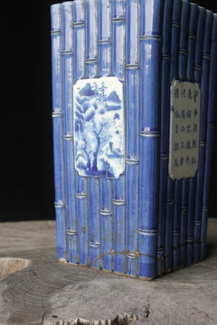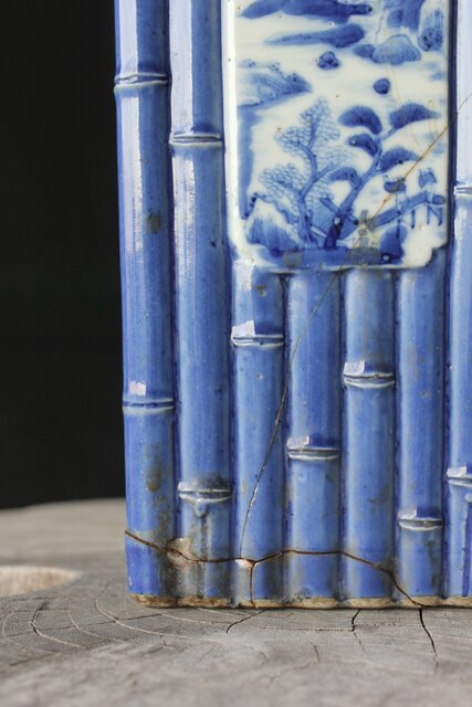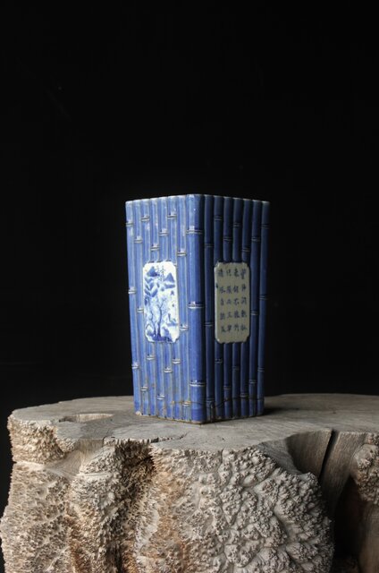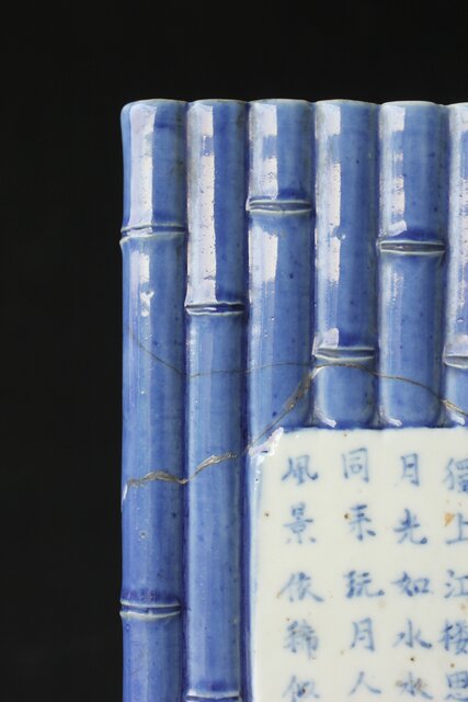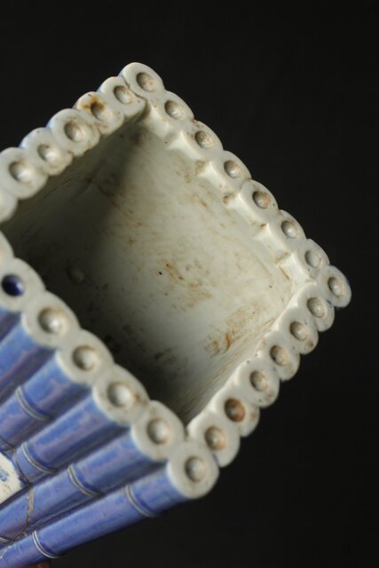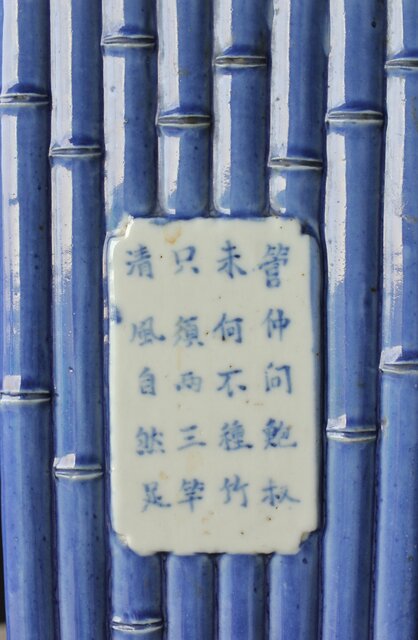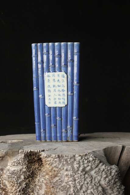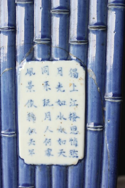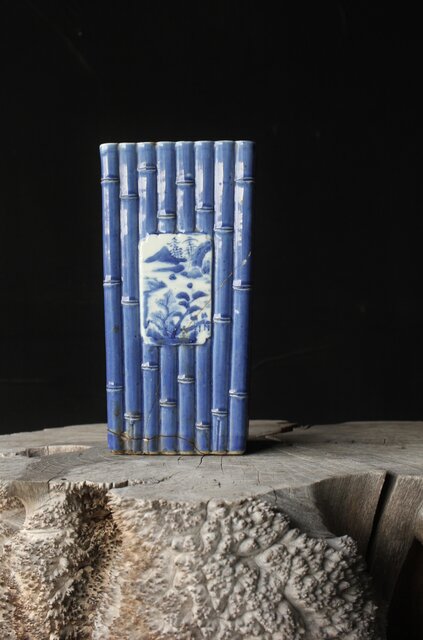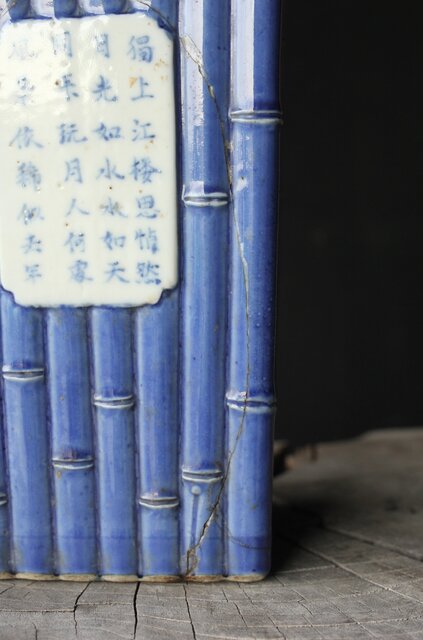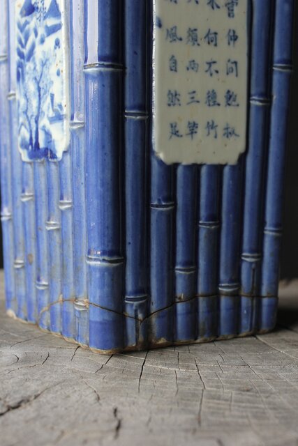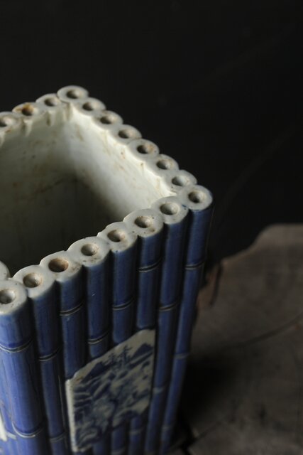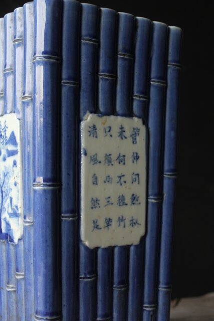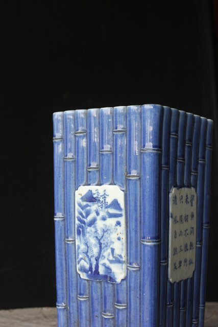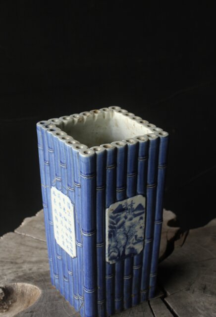 染付窓貫漢詩 竹節型花生/花瓶/四方瓶 P385