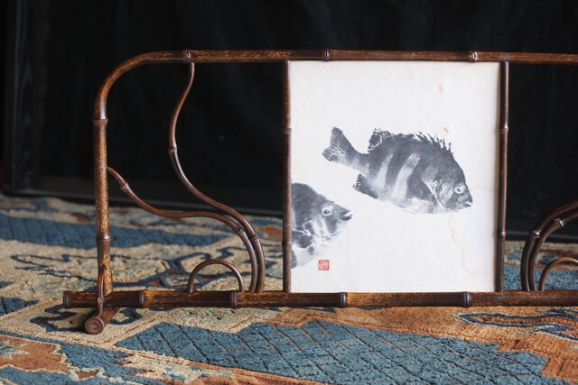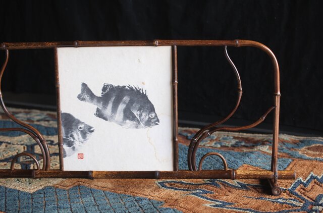 曲げた竹の意匠が素敵な色紙掛
